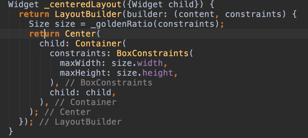 Most stock widgets in Flutter have a lot of optional parameters, so keeping them in separate lines can be a big win.